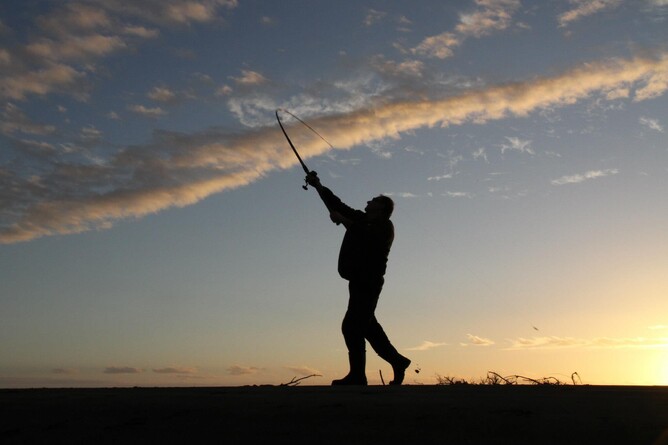 Use a good quality mainline (no heavier than 18lb) but be sure to use a shockleader, or your line will keep breaking off. (preferably a tapered shockleader so that you end up with a nice small knot where the shockleader joins onto your mainline and will fly through the guides easily) Straight off the ground cast Good casts require a lot of practice. With this cast start facing in the direction you want to cast to. Place your sinker directly behind you in a straight line with it resting on the ground. Your rod tip should be pointing down in the same direction and in-line with the sinker. Maintain enough pressure on the line to just feel the weight of the sinker. (Don't forget to open up your bail arm on your reel and make sure drag is up tight).